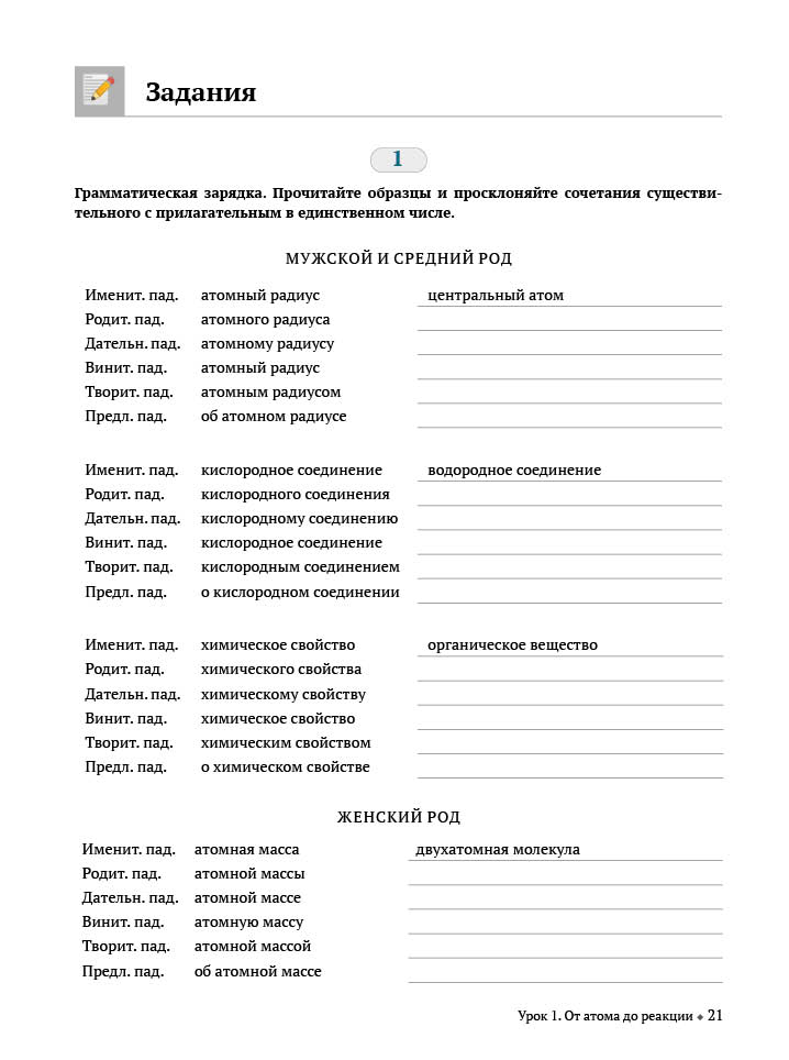 Пособие предназначено для иностранных учащихся (уровень общего владения русским языком А2–В1), которым предстоит осваивать курс общей и неорганической химии в российских вузах по применяемым там учебникам. Это могут быть как будущие химики, так и геологи, биохимики и представители других смежных специальностей. В центре внимания находится специальная лексика, однако достаточное внимание уделяется и частотным в учебниках по общей и неорганической химии грамматическим элементам и конструкциям.
