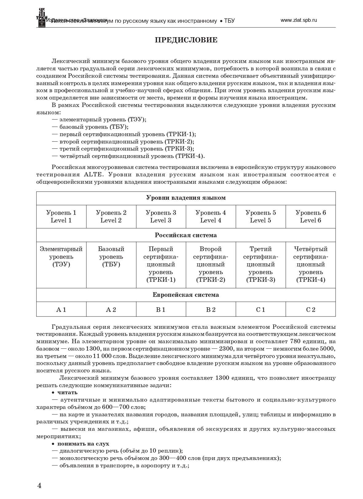 Издание является частью официального комплекса материалов Российской государственной системы тестирования граждан зарубежных стран по русскому языку. Лексический минимум содержит слов и выражений в соответствии с требованиями к уровню владения русским языком. Грамматические комментарии, примеры употребления, перевод на английский, немецкий, французский, испанский и китайский языки, тематические группы слов. Издание может использоваться при подготовке к экзаменам на сертификат соответствующего уровня. Предназначено для учащихся всех форм обучения, преподавателей, авторов учебных пособий, администрации учебных центров и языковых школ,специалистов в области международного образования. A2