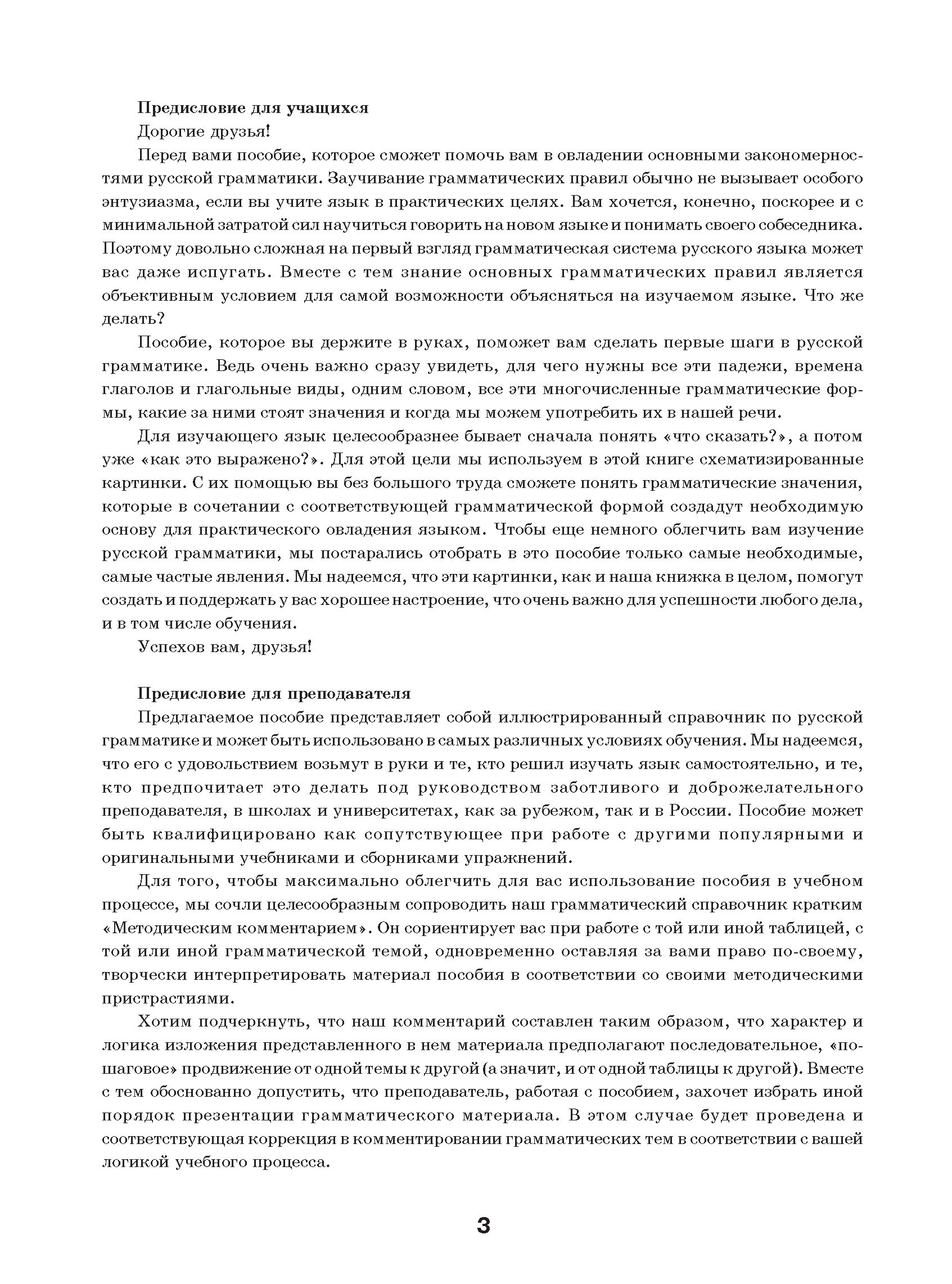 Систематизированный иллюстрированный справочник по русской грамматике в объеме I сертификационного уровня (А1-В1, средний этап). Для аудиторной и самостоятельной работы. Содержит 270 пиктографических таблиц, которые сопровождаются методическими рекомендациями.