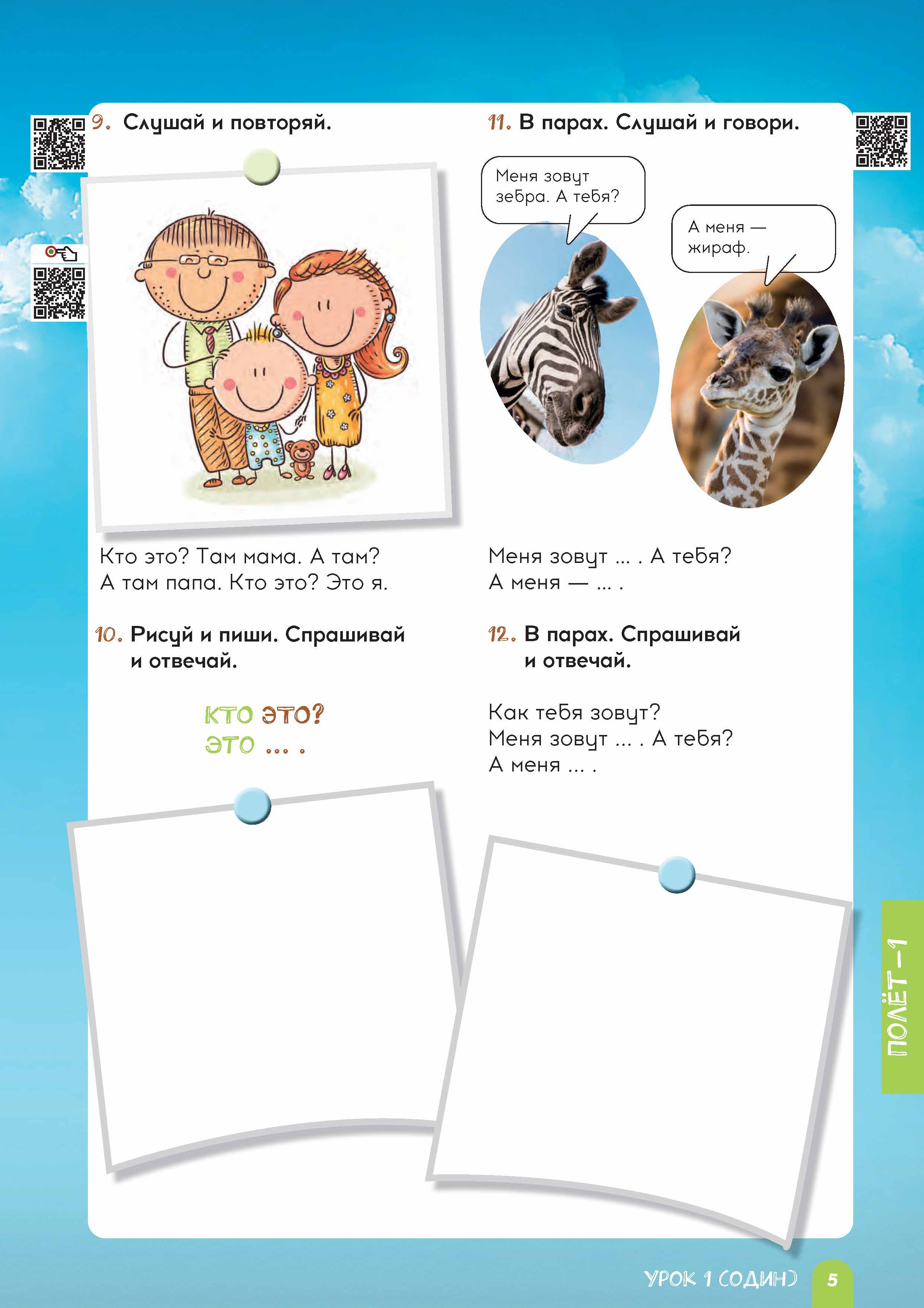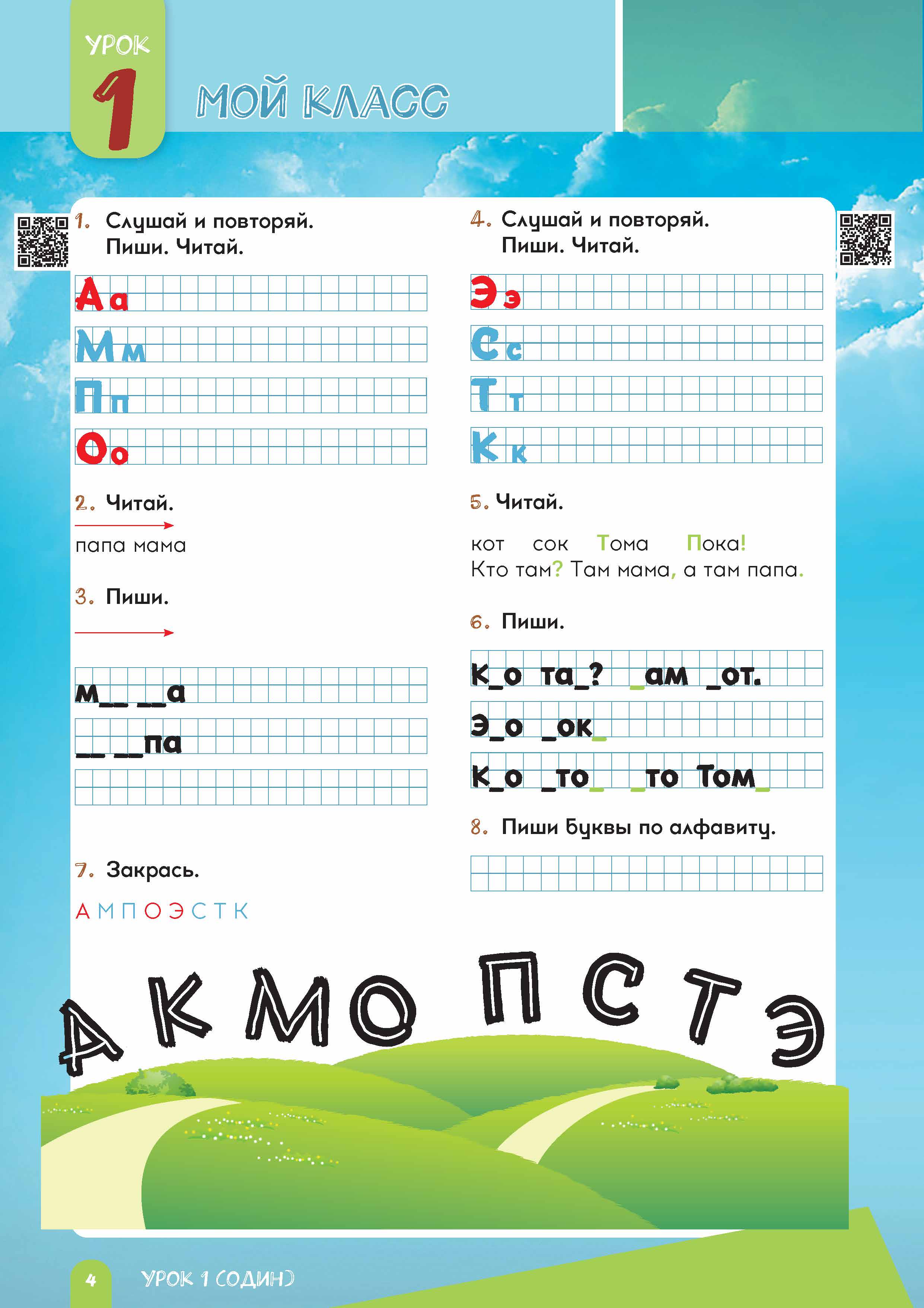 Учебное пособие по русскому языку для детей-иностранцев (РКИ) 1 года обучения возраста 8-9 лет. Уровень А0 - предА1. Использует приёмы CLIL и естественный порядок освоения языка. Рассчитано на 60-70 часов обучения в классе и достижение коммуникативной компетенции на уровне предА1.