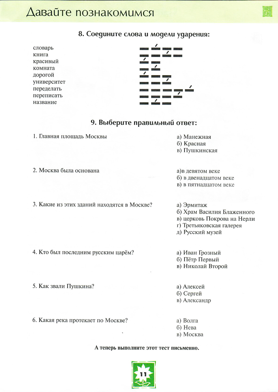 Курс для занятий на базовом-первом уровне (А2-В1) учит в сжатые сроки устному общению на русском языке, умению понимать и вести беседу на бытовые и общекультурные темы. В то же время уделяется внимание выработке навыков чтения, а также самостоятельного анализа грамматических явлений изучаемого языка, что способствует более прочному усвоению материала. Грамматический комментарий на английском языке, цветные иллюстрации.