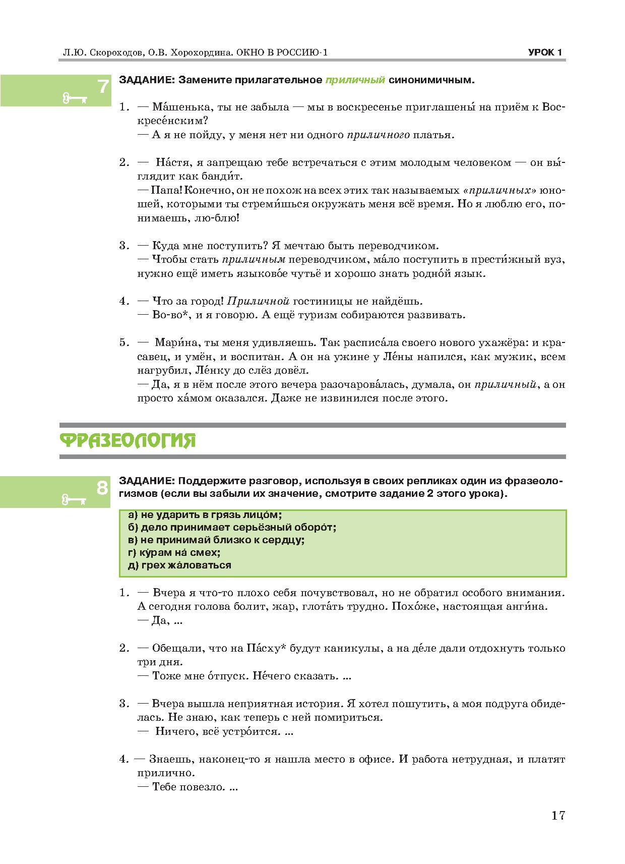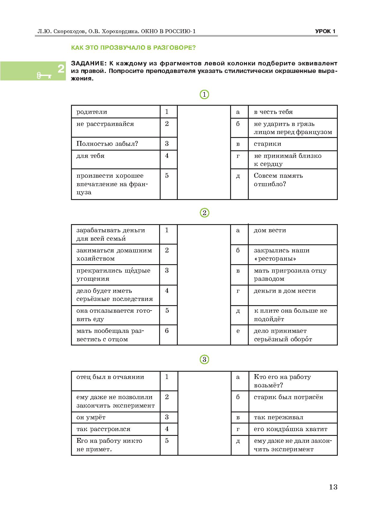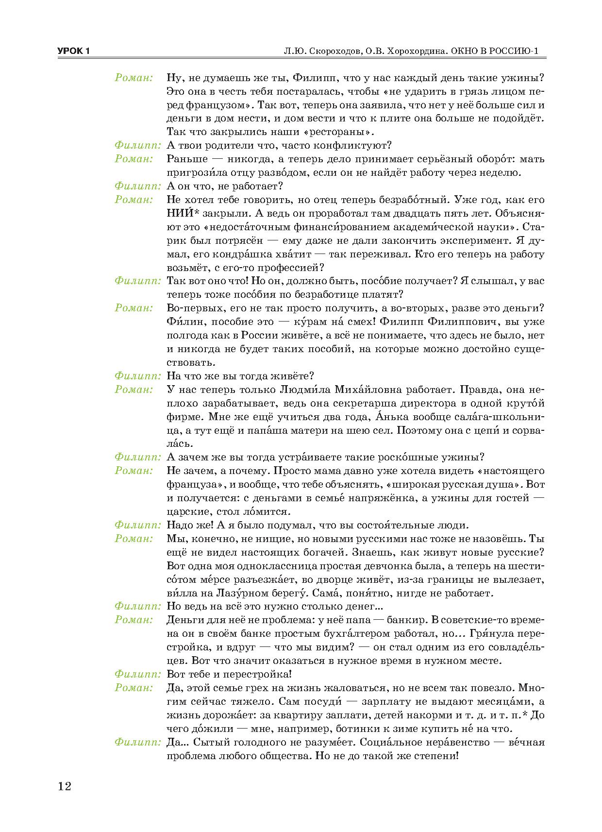 Учебное пособие «Окно в Россию» адресовано изучающим русский язык как иностранный на II–III уровне (B2–C1). Может служить основой для практического знакомства со стилевыми разновидностями русского языка, а также различными сторонами жизни современной России: положение в обществе (с точки зрения материальной обеспеченности и принадлежности к определённой социальной группе), возможность профессиональной реализации; работа, учёба, досуг российской молодёжи; культурные интересы разных слоёв общества (литература, музыка, скульптура, кино). Пособие рассчитано примерно на 120 часов. Авторы отводят большую часть языковых и условноречевых упражнений для самостоятельной работы, снабдив такие задания необходимыми лингвистическими и культурологическими комментариями, а также ключами, данными поурочно.