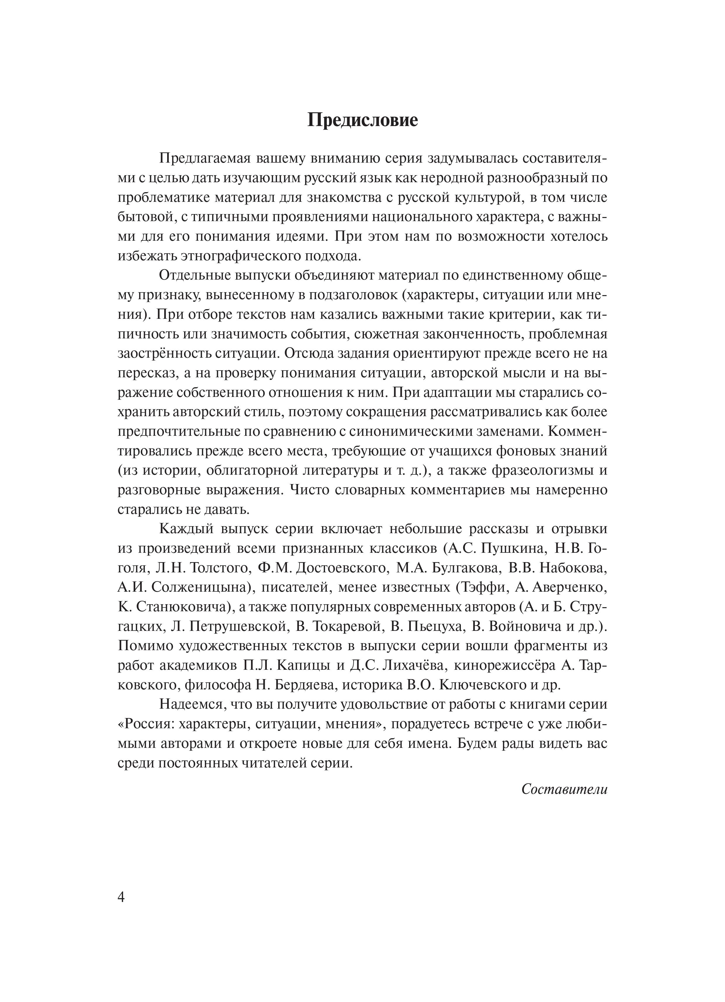 Книга предлагает разнообразные адаптированные художественные тексты из произведений классической и современной литературы. Рекомендуется для аудиторных занятий по русскому языку как иностранному (2–3-й год обучения) со студентами и школьниками, а также для индивидуального чтения. В текстах проставлены ударения, имеются постраничные комментарии и задания. В1-С1